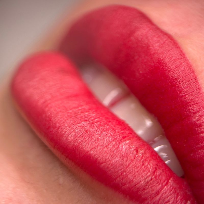 - riempire la mucosa con il pigmento dando un effetto ottico di volume e di labbra più piene e carnose, giocando con i colori si può ottenere un effetto 3D di volume.